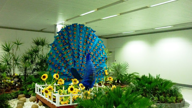 அங்கிருந்து செக் அவுட் செய்யும் பகுதியில் இந்த நீல மயில். இருந்தது.